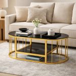 Be the first to review “Oval Shaped Gold Coffee Table With Storage”